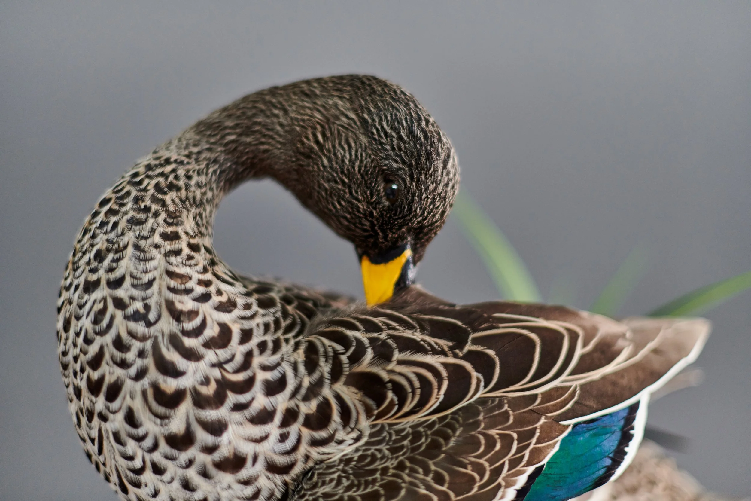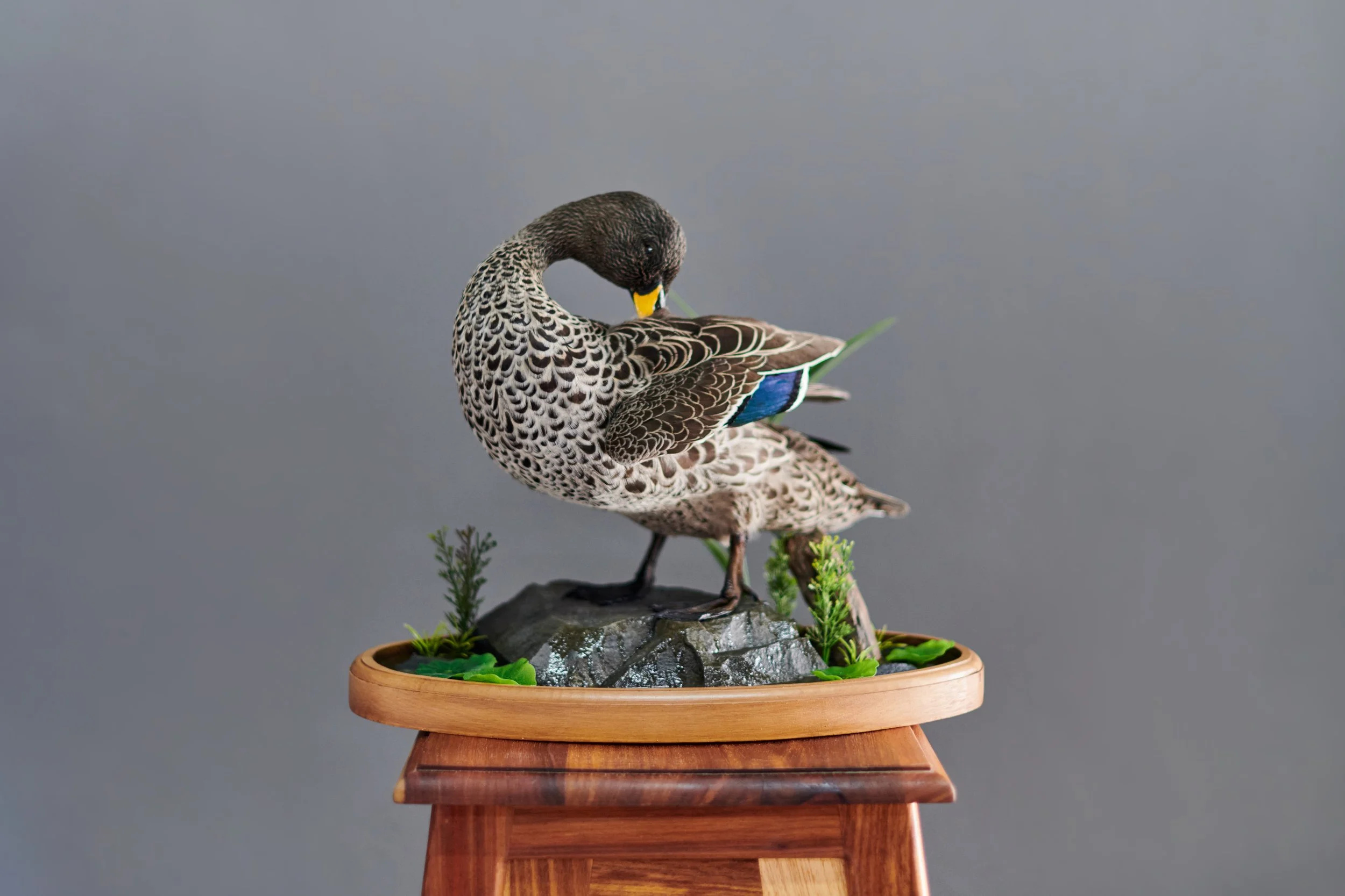 Yellow-Billed Duck Preening Mount with Habitat Base